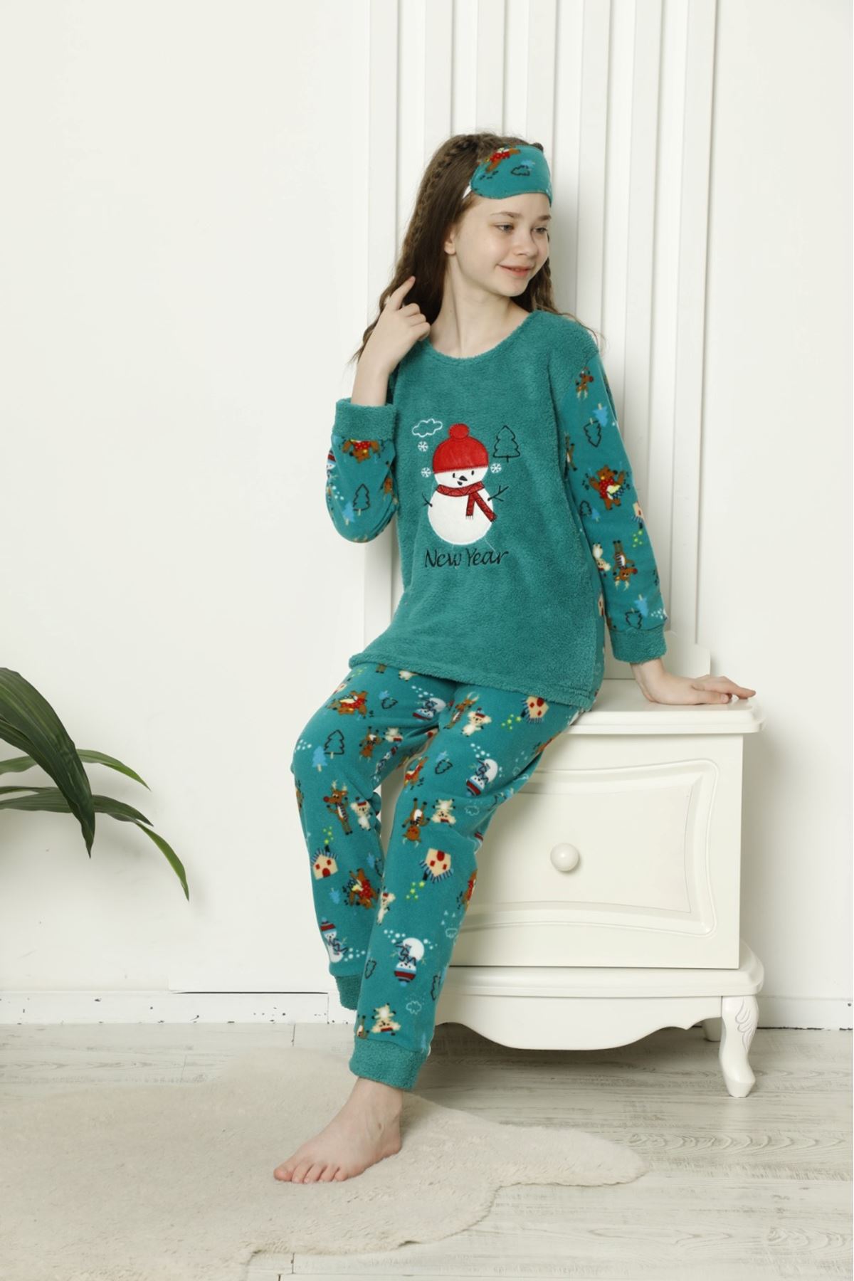 Çocuk Yeni Yıl Desenli Kışlık Welsoft Polar Pijama Takımı(BİR BEDEN BÜYÜK TERCİH EDİNİZ) 6E-6006