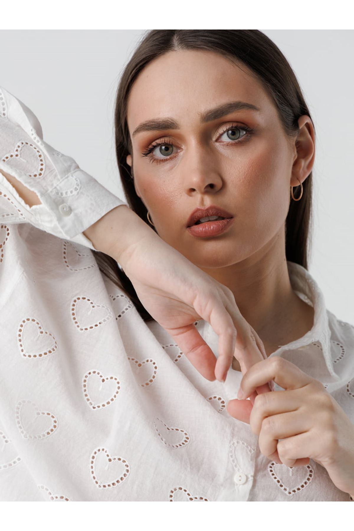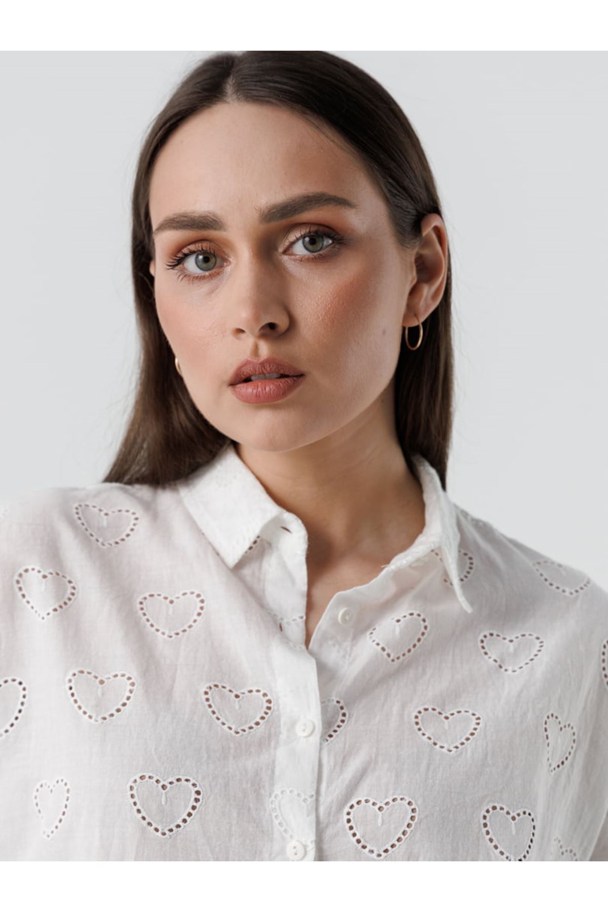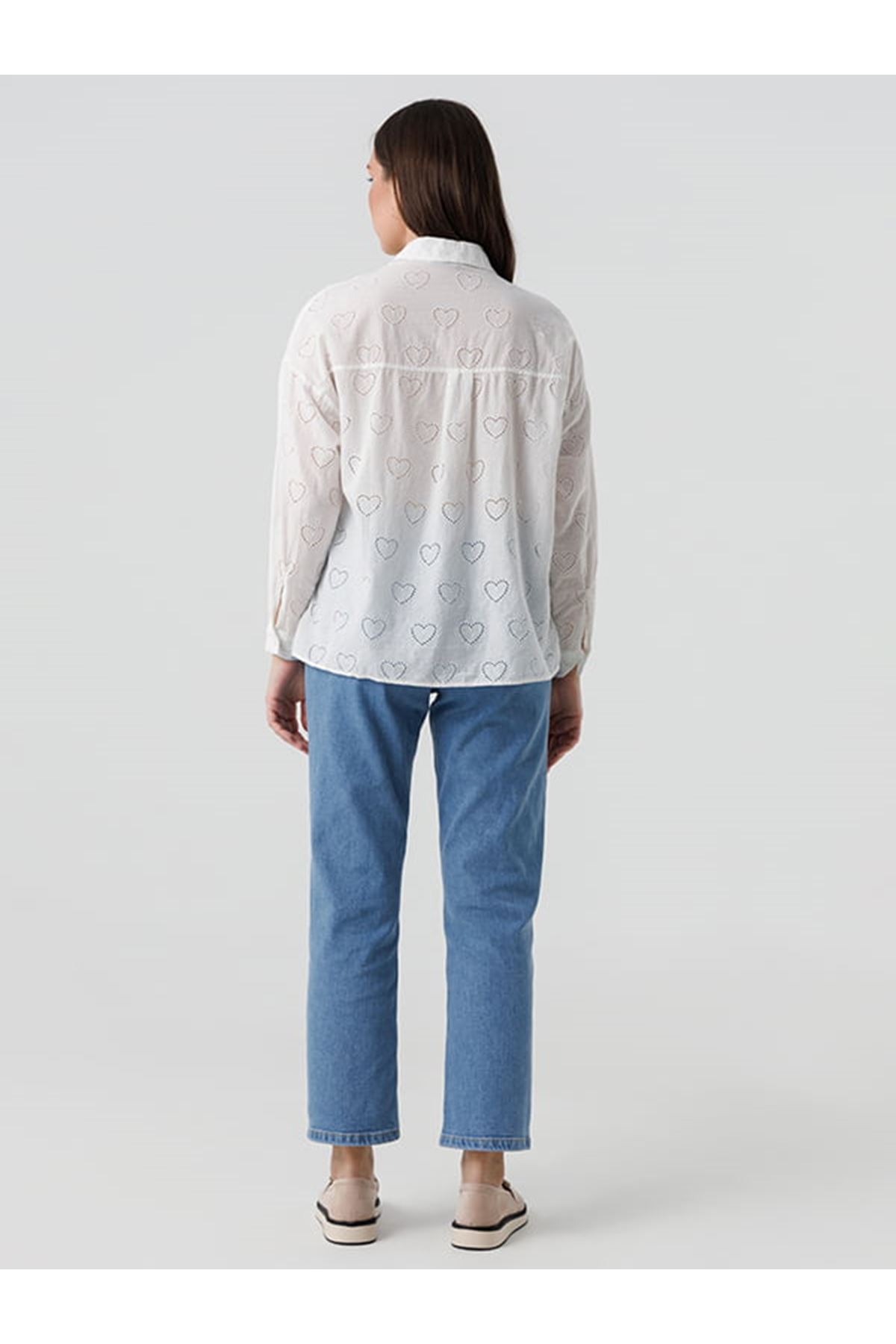 Kadın Beyaz Brode Kalp Desenli Nakış işlemeli Pamuk Gömlek 12A-2355