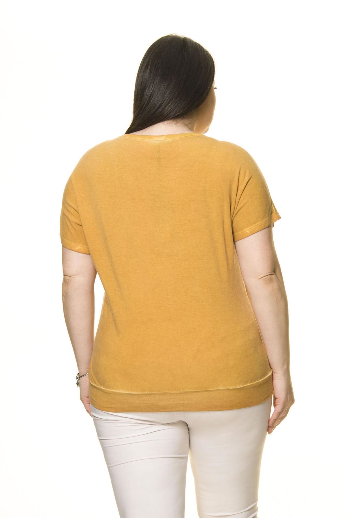 Kadın Büyük Beden Hardal Sarı Zımbalı Bluz A7-3023-1