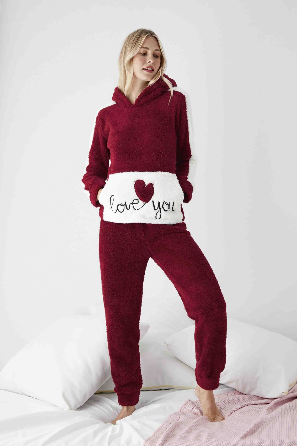 Kadın Kapüşonlu Kışlık Cepli Tam Peluş Takım 4F-1025B