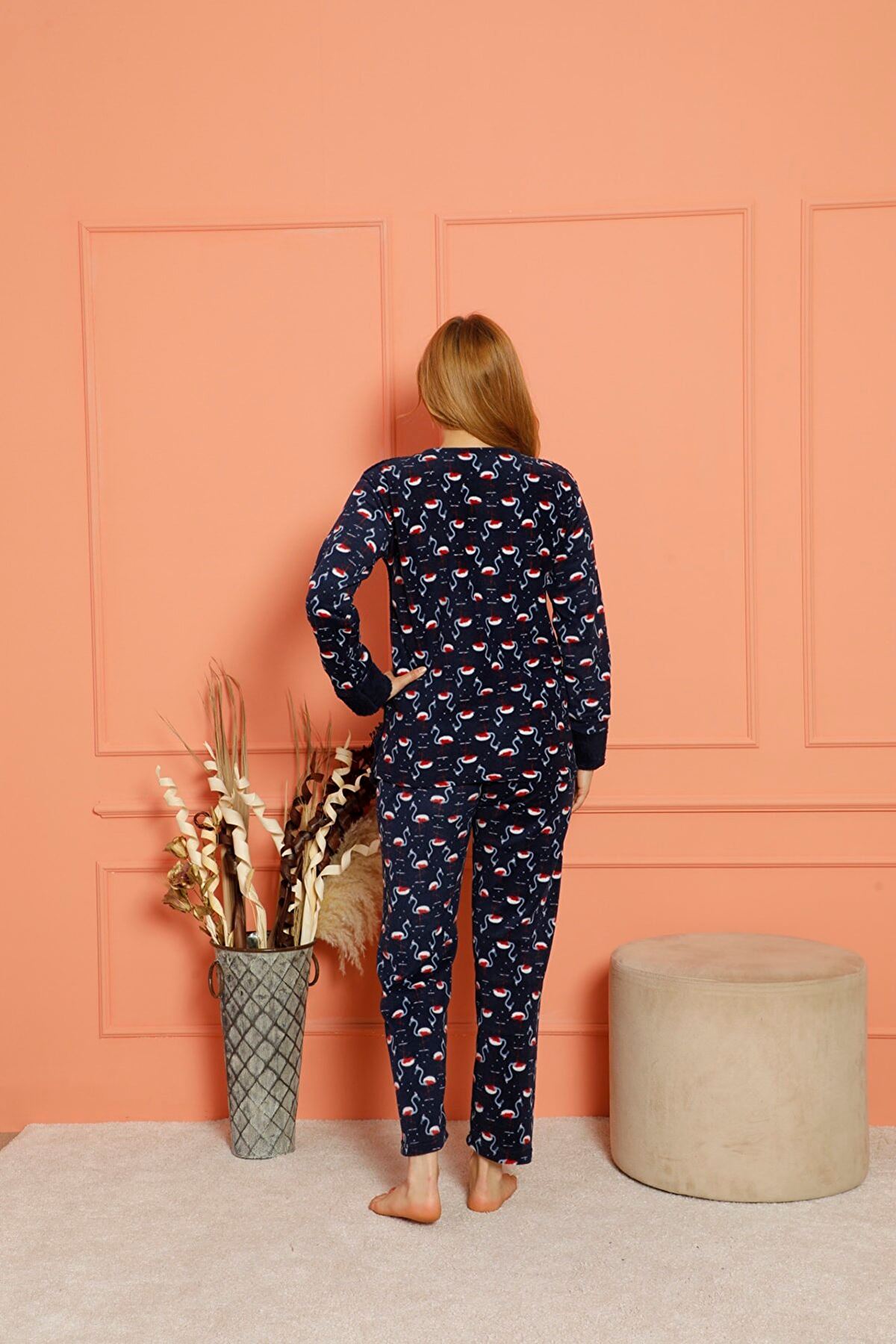 Kadın Lacivert Flamingo Desen Kışlık Polar Welsoft Pijama Takımı 18K-1852