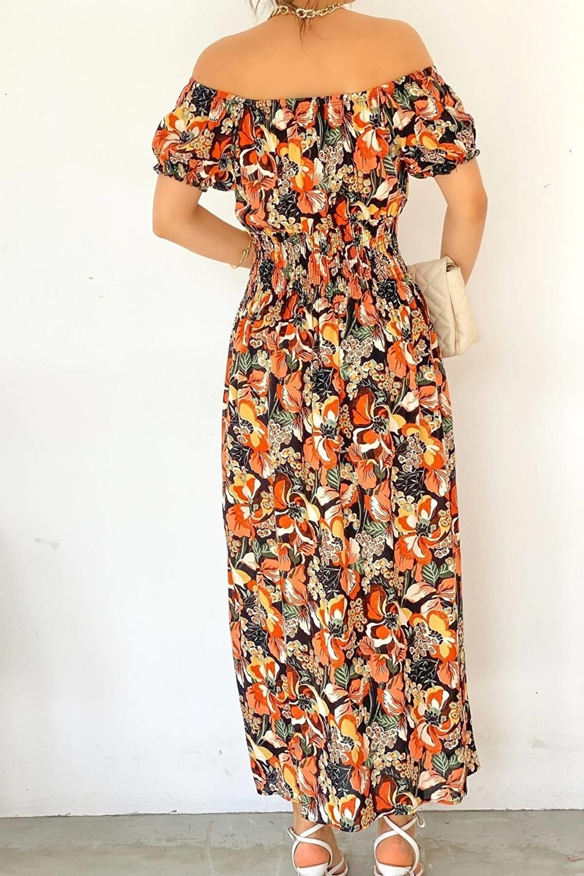 Kadın Madonna Yaka Çiçekli Gipeli Yazlık Elbise 12C-5052