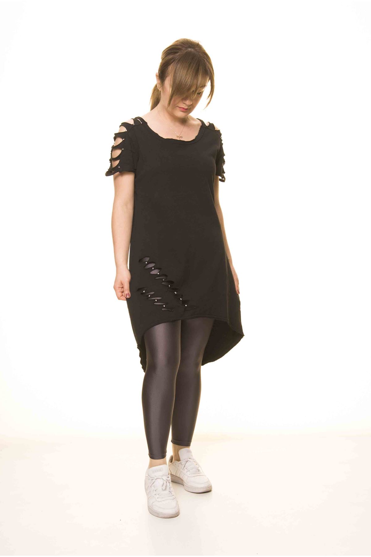 Kadın Siyah Yırtıklı Tarz Tunik 14D-3069-1