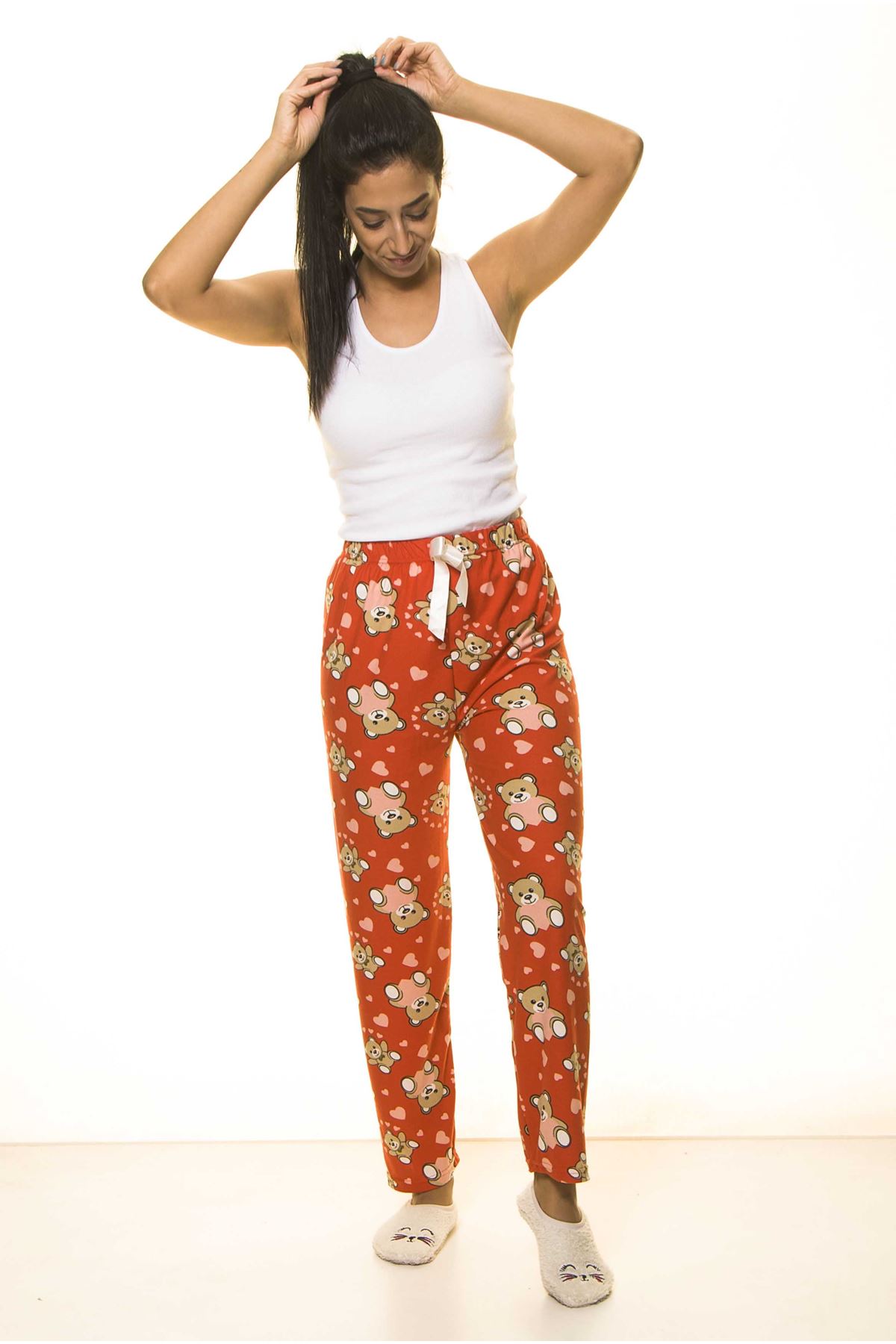 Kırmızı Sevimli Yumuşak Süet Penye Ev Pijama Altı 9D-2058